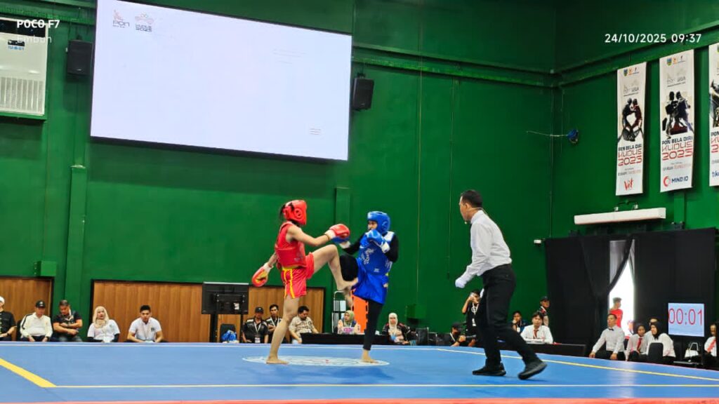 Satu-satunya wakil Sumbar yang berhasil melaju ke babak berikutnya adalah Ghaziatul Hanifah, setelah menumbangkan Sintia Margareta dari Papua Tengah pada nomor Sanda kelas 56 kilogram putri, Jumat (24/10/2025).
